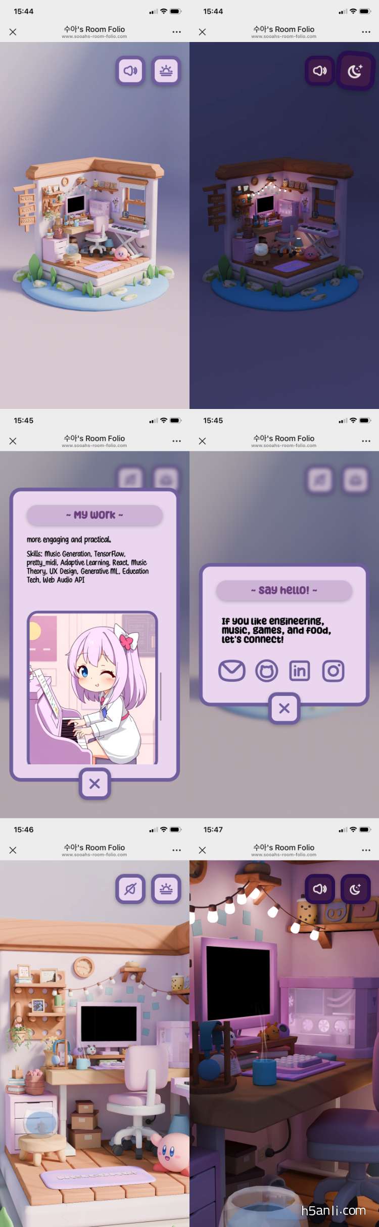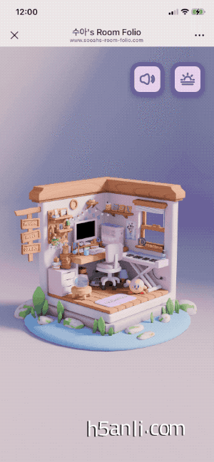 一个韩国女孩的自我介绍网站,进入网站可以看到一个小巧、3D立体、可爱的房间。可以旋转角度查看房间。