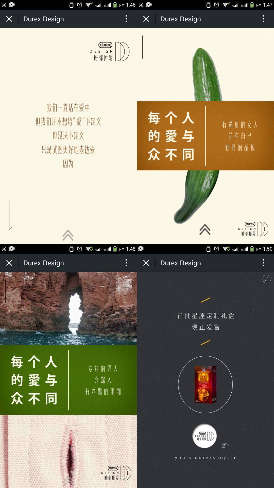 策划上,通过图片展示每个人的爱与众不同,点出杜蕾斯定制,给唯一的人唯一的爱